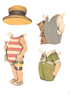 The first doll is Peter. He is from September 1920. He has 5 outfits and a hat. The second doll is Peggy. She is from May 1920 and has two outfits.Dolly Dingle friends. Grace G Drayton is the artist. from Pictorial Review magazine
